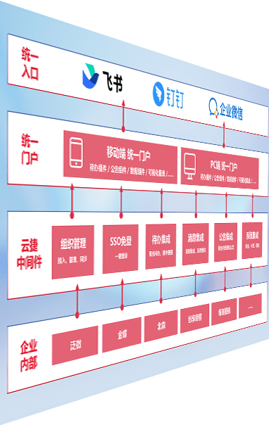 对协作平台提供支持服务,,支持企业应用与协作平台对接,,,包含组织同步、、、、消息集成、、、、待办集成等。。支持目前主流的协作平台:钉钉、、、企微和飞书。。。。